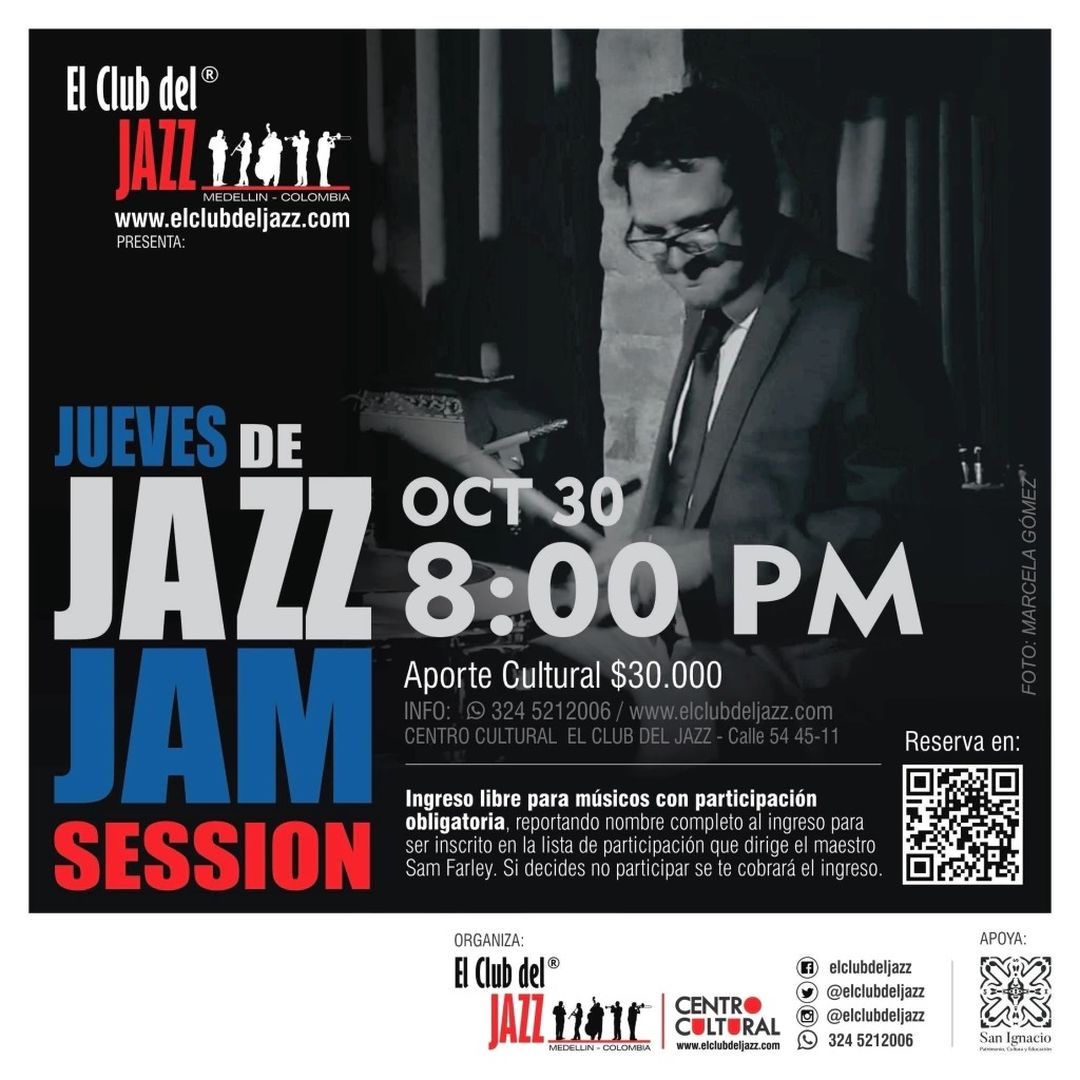 Todos los jueves, El Club del Jazz se convierte en el epicentro de la improvisación musical en Medellín. Bajo la dirección del maestro Sam Farley, músicos locales y visitantes se reúnen para crear en tiempo real, tejiendo un espacio vibrante donde cada sesión es irrepetible.