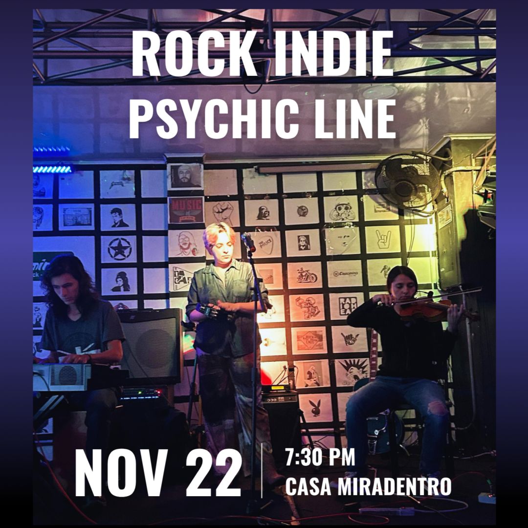 La Casa Miradentro se llena de atmósferas sonoras con la presentación de Psychic Line, una propuesta local de rock alternativo e indie en inglés que combina guitarras melódicas, percusión acústica y letras honestas. Su sonido fresco, sin pretensiones y cargado de emoción invita a vivir la música desde la autenticidad.